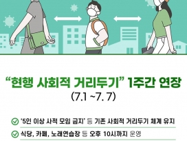7월 7일까지 1주간 현행 사회적 거리두기 연장
