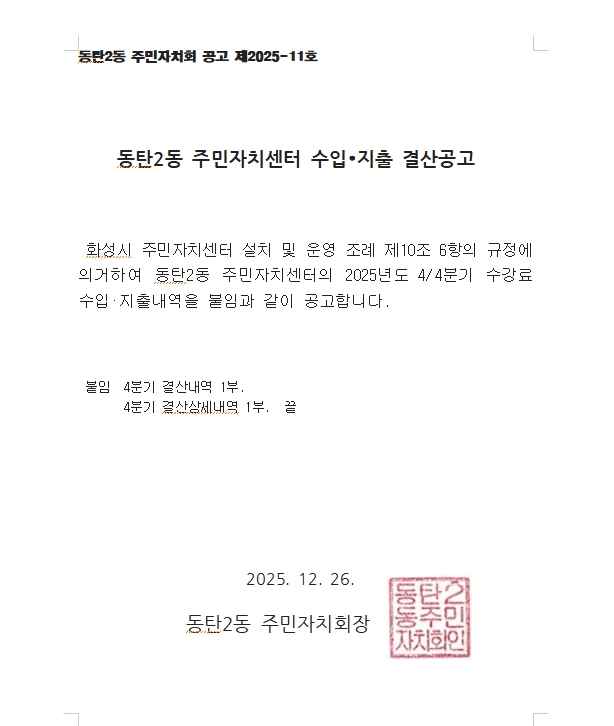 2025년 동탄2동 4분기 주민자치센터 강사 모집 공고 c