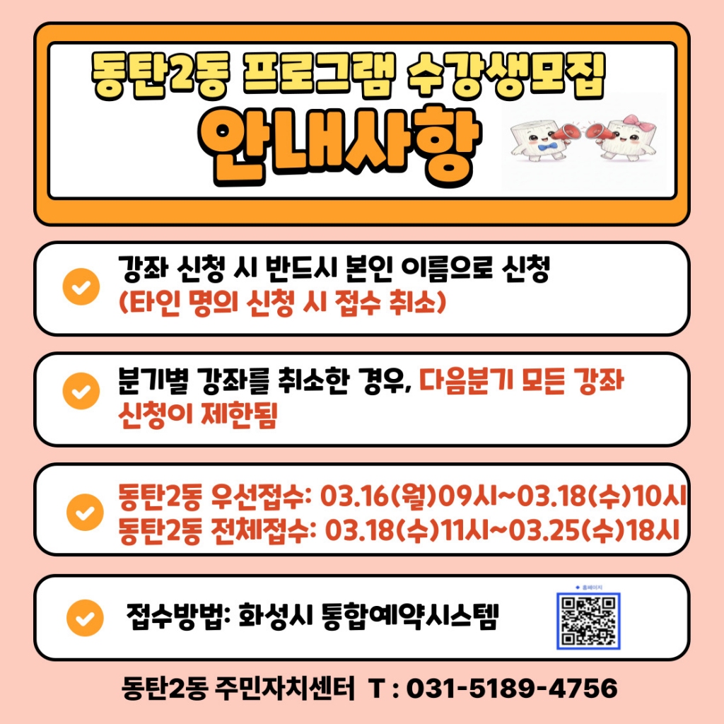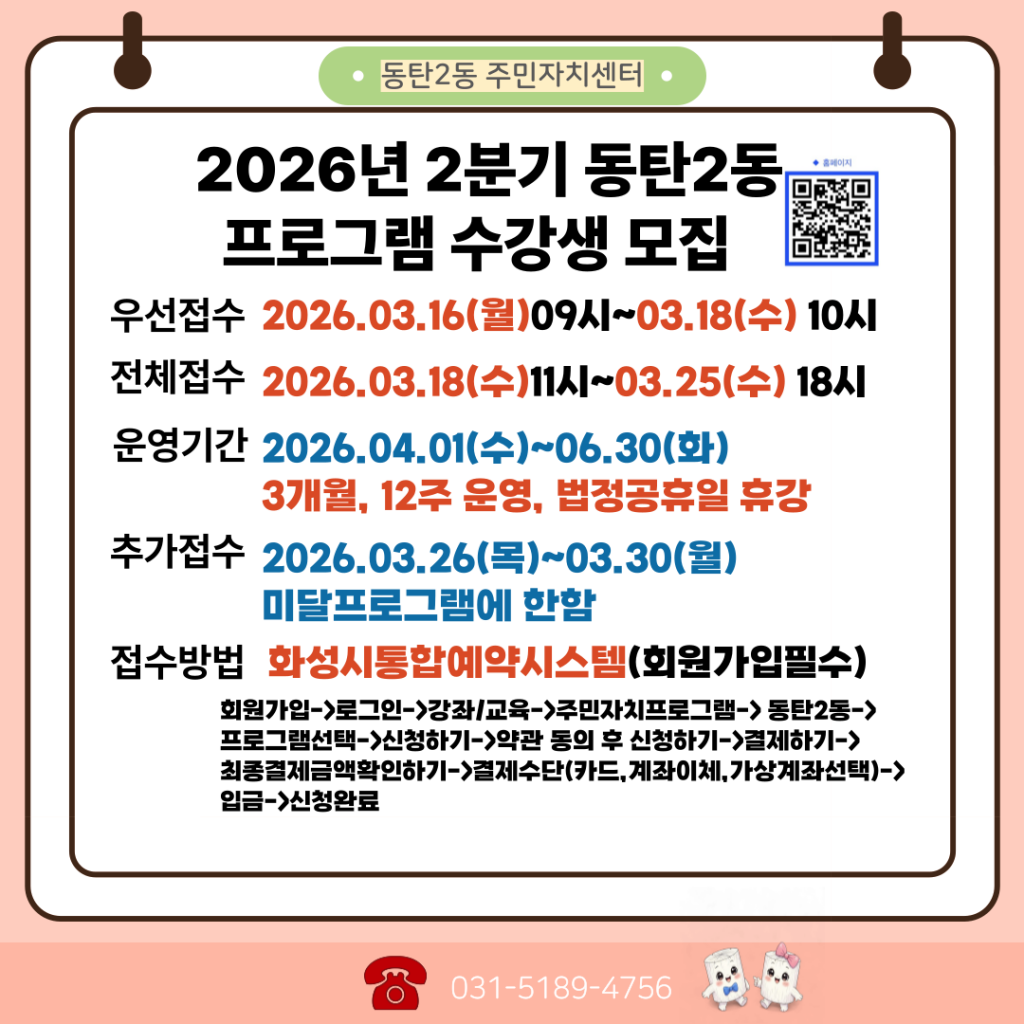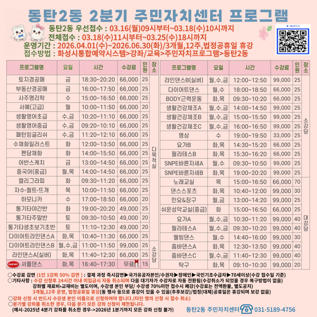 2026년 동탄2동 주민자치회 2분기 프로그램 수강생 모집안이 나왔습니다.
