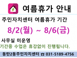 동탄2동주민자치센터 여름휴가 안내